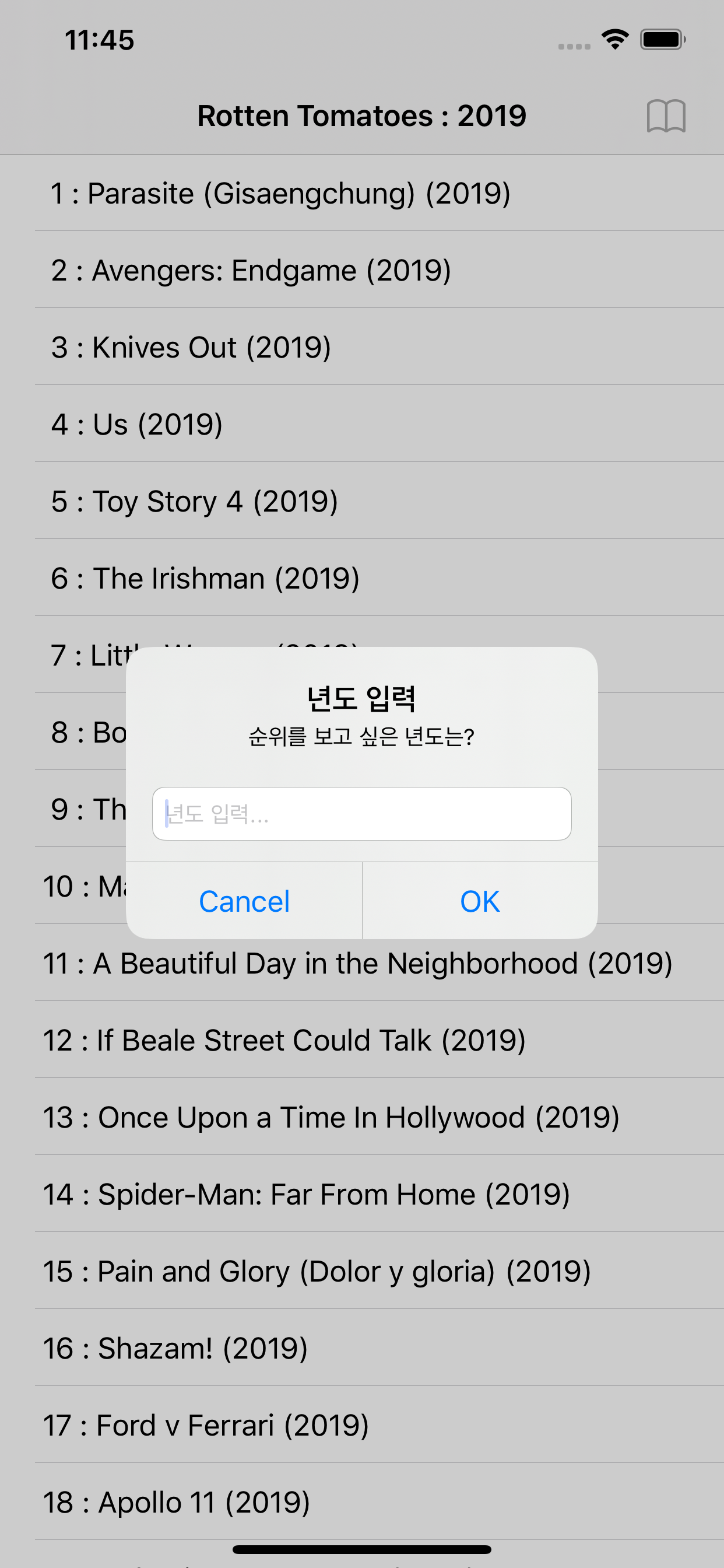 let alert = UIAlertController(title: "년도 입력", message: "순위를 보고 싶은 년도는?", preferredStyle: UIAlertController.Style.alert)